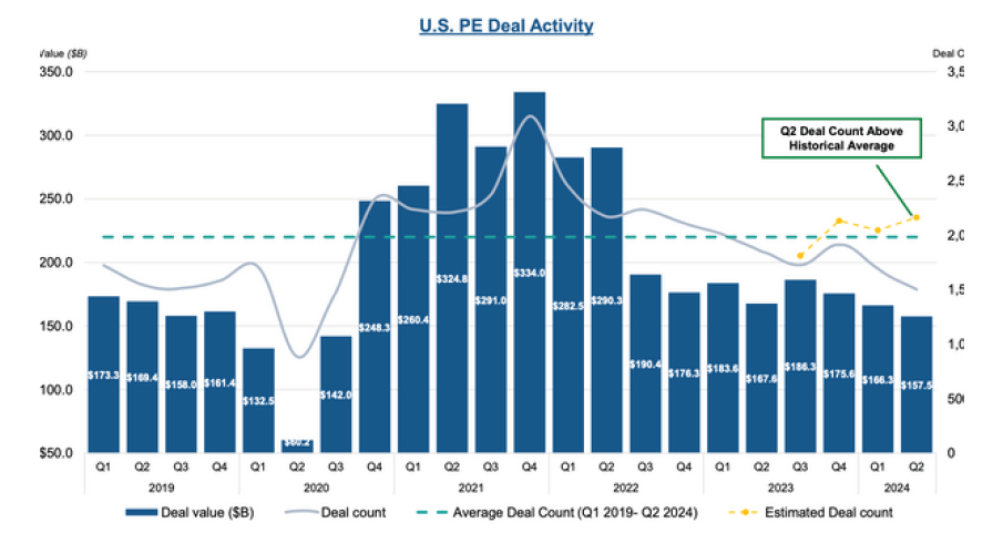 - PE firms in the U.S. closed 2,163 deals in Q2-2024
