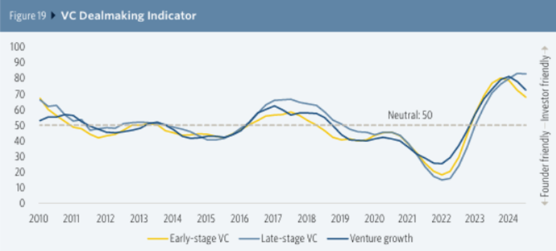 The PitchBook VC Dealmaking Indicator averaged 73 across early-stage, late-stage, and venture growth segments. These investor-friendly conditions present an opportunity, but only for those with discipline and patience.